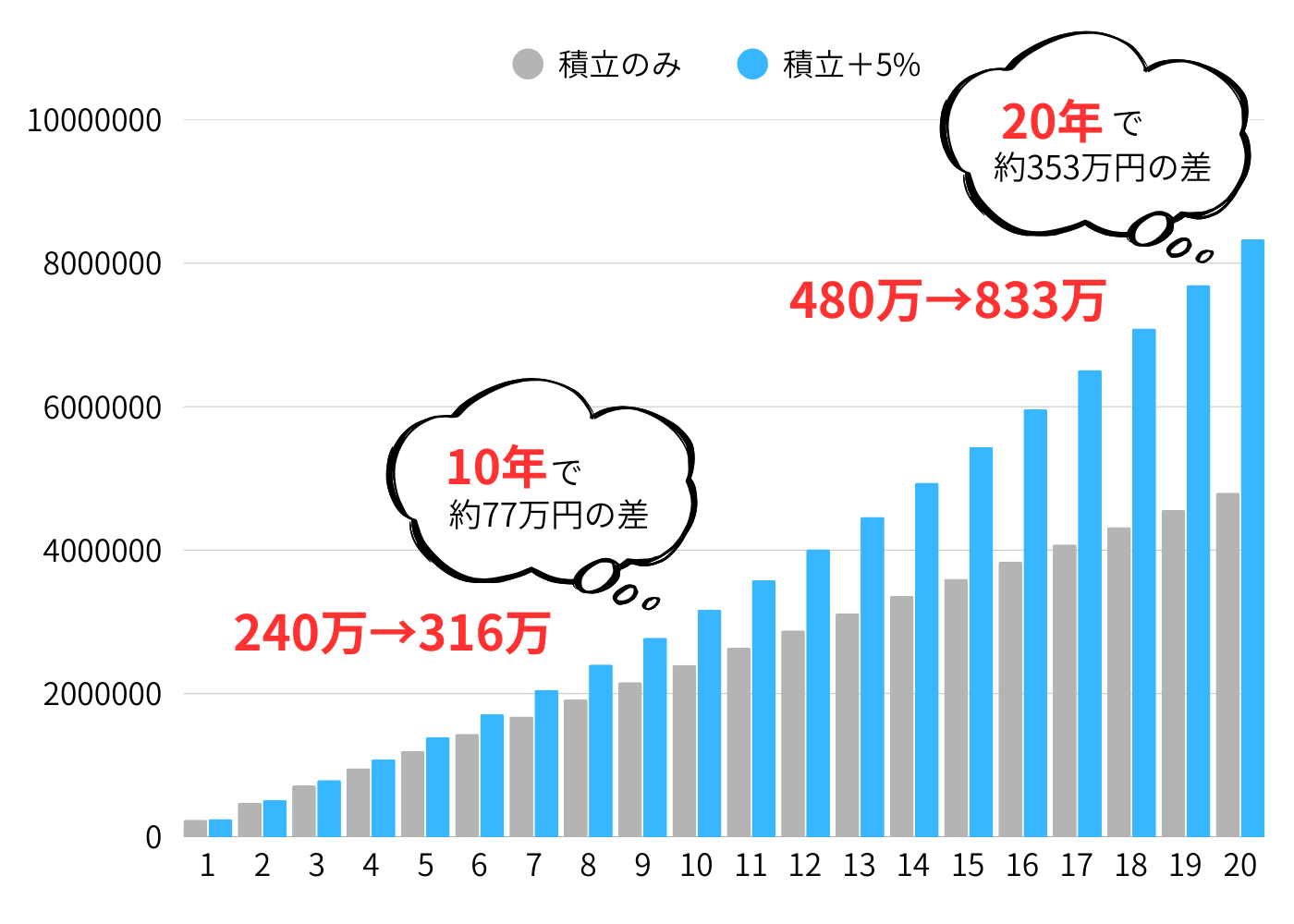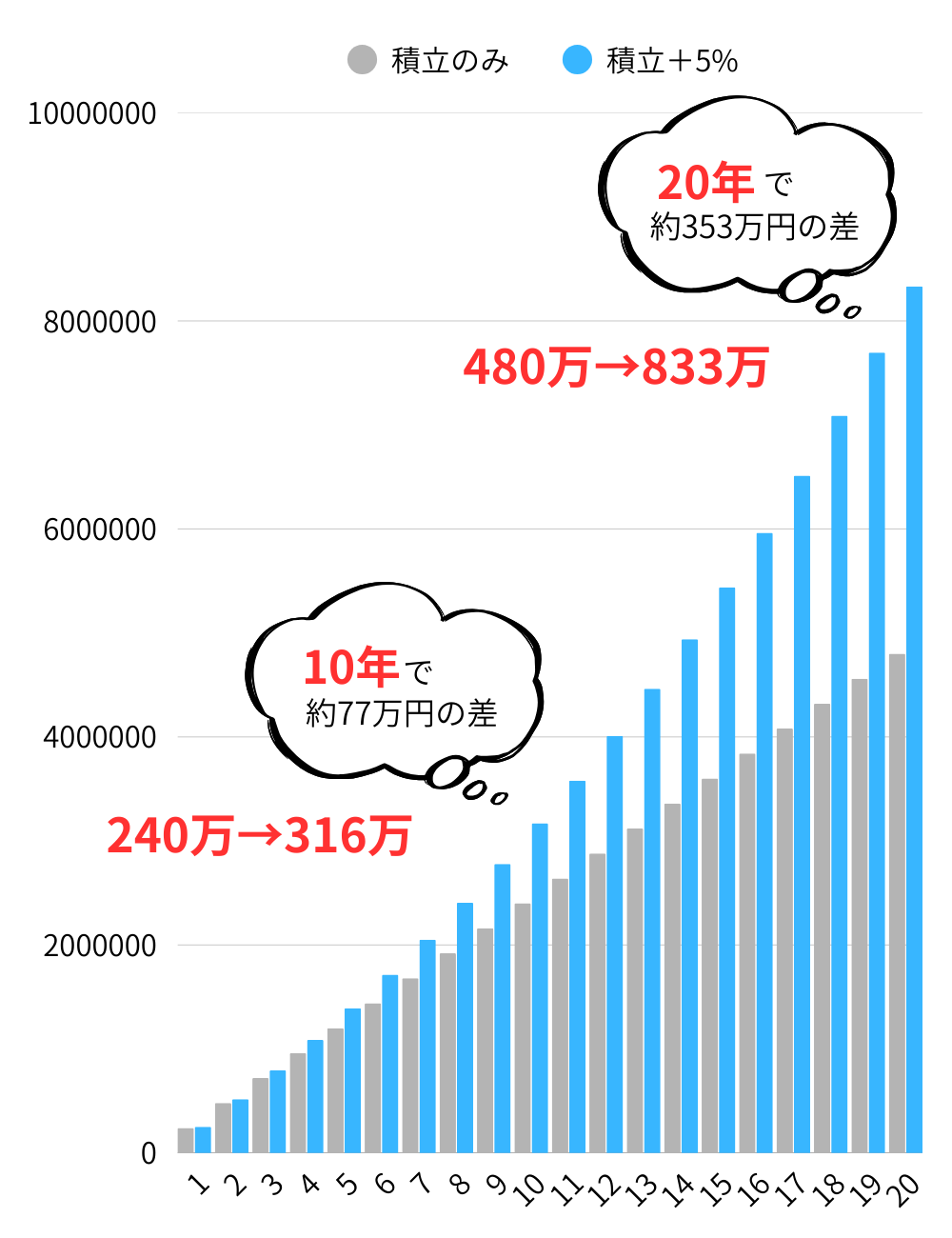 長く続けるほど複利の力でお金が育つ仕組みです。